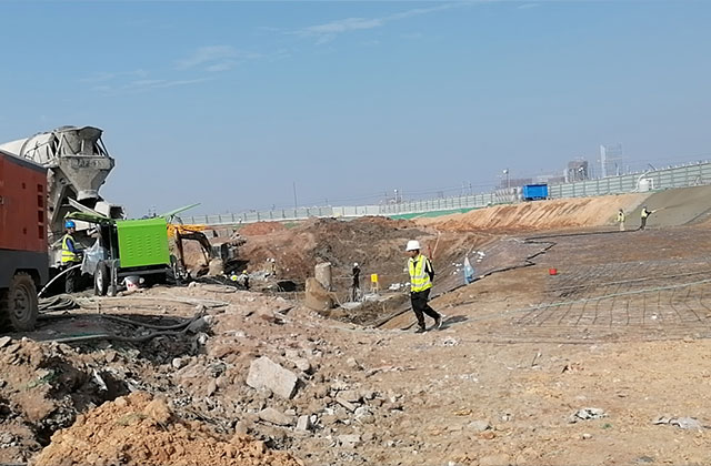 混凝土噴漿機(jī)是利用壓縮空氣或其它動力,將按一定比例配合的拌和料通過管道輸送并高速噴射到受噴面上凝結(jié)硬化,從而形成混凝土支護(hù)層。噴射混凝土技術(shù)工藝簡便,施工造價(jià)低,適應(yīng)面廣,在各種建筑領(lǐng)域內(nèi)發(fā)揮了重要作用。